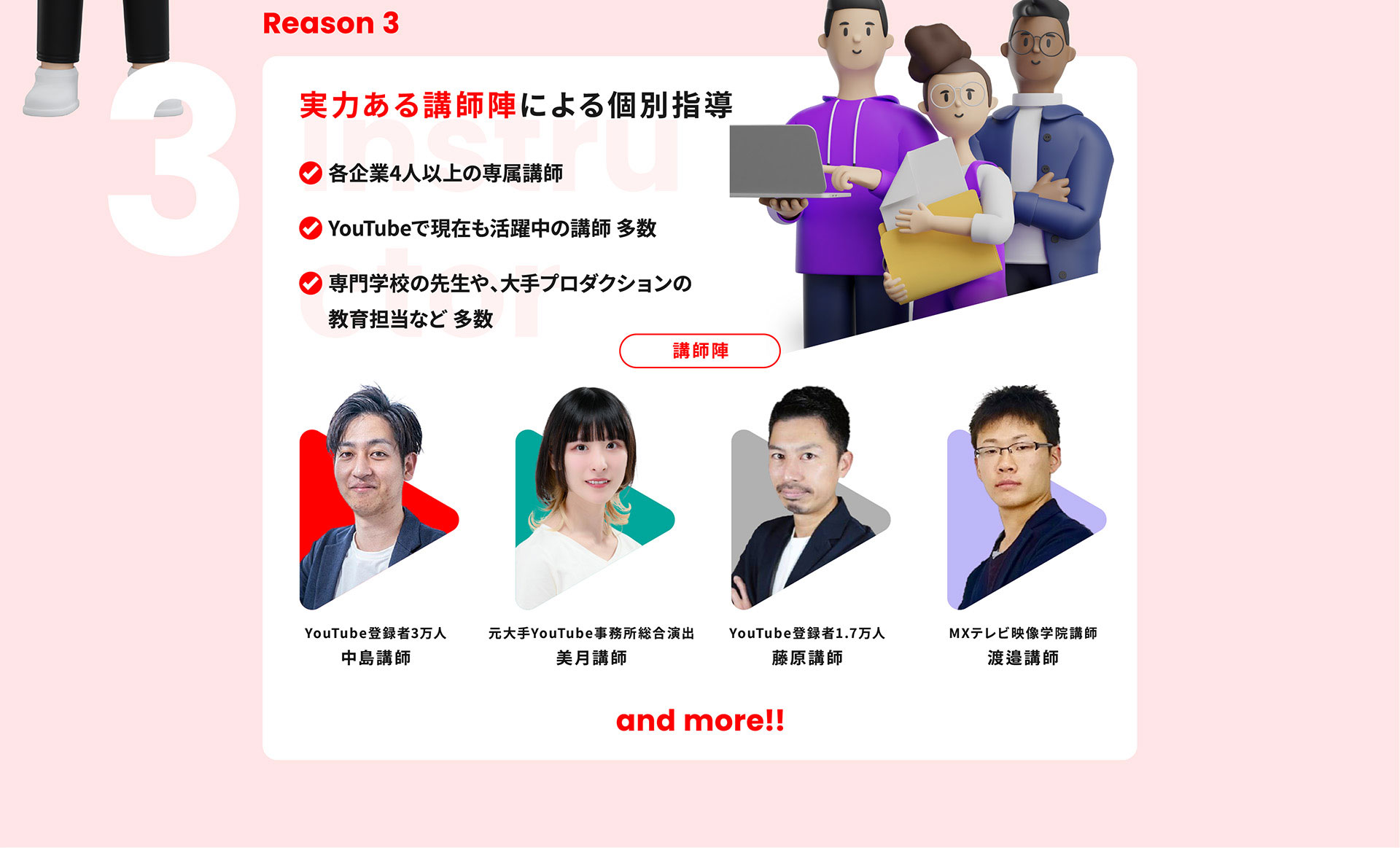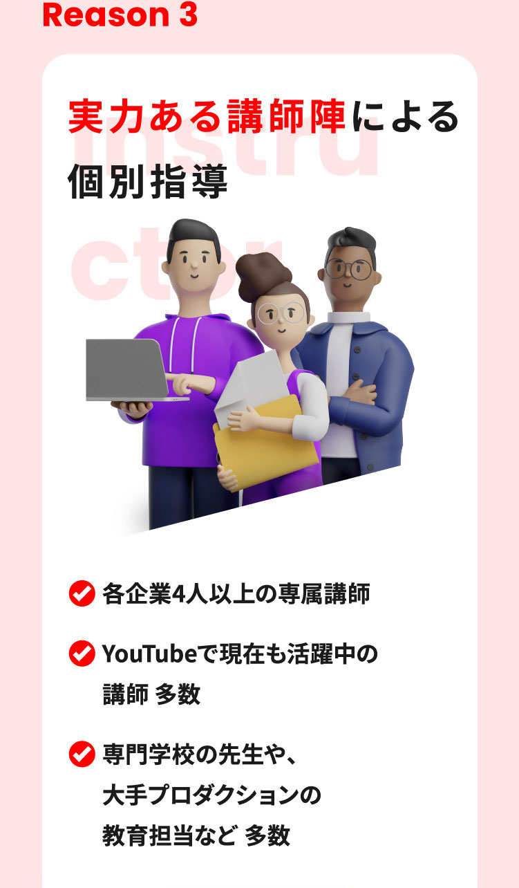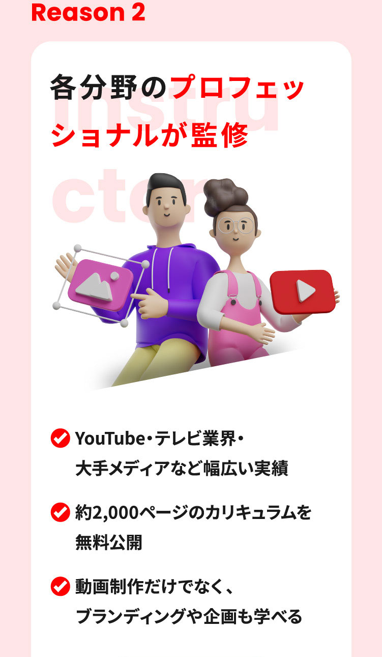 今のところはYouTube以外の教育カリキュラムは用意しておりません。今後ご要望が多い場合開設を検討したいと思います。 なお、私たちは様々な種類のSNSに取り組んでいますが、YouTubeが最も難しいSNSであることは間違いありません。 そのため、YouTubeをマスターすることができれば、他のSNSにも応用が効くと考えています。